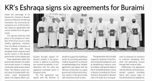 Muscat: Under the patronage of H.E. Dr. Hamad bin Ahmed Al Busaidi, Governor of Al Buraimi, the Eshraqa Foundation, the community development arm of Khimji Ramdas, signed six agreements with various entities from the governorate. The signing ceremony took place in the presence of members of the Shura Council, walis, sheikhs, dignitaries, members from the Board of directors of Khimji Ramdas (KR) Group alongside heads of government service sectors in the Buraimi governorate.
